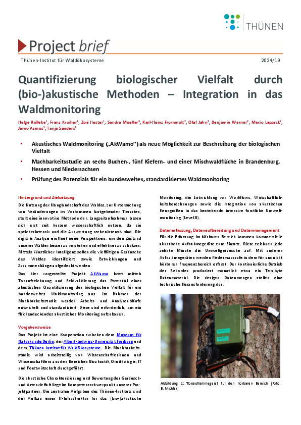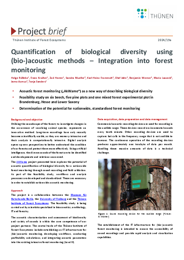Quantification of biological diversity using (bio-)acoustic methods – Integration into forest monitoring