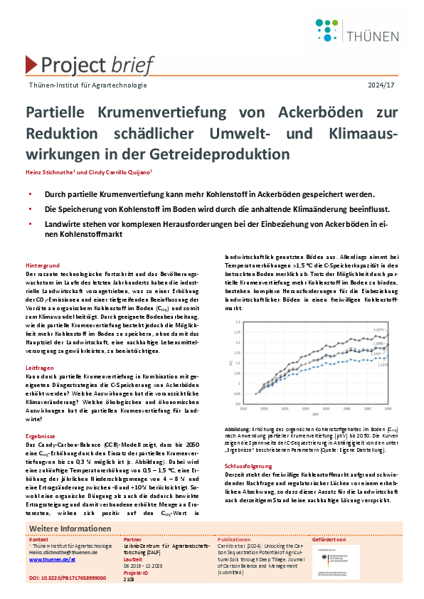 Partielle Krumenvertiefung von Ackerböden zur Reduktion schädlicher Umwelt- und Klimaauswirkungen in der Getreideproduktion