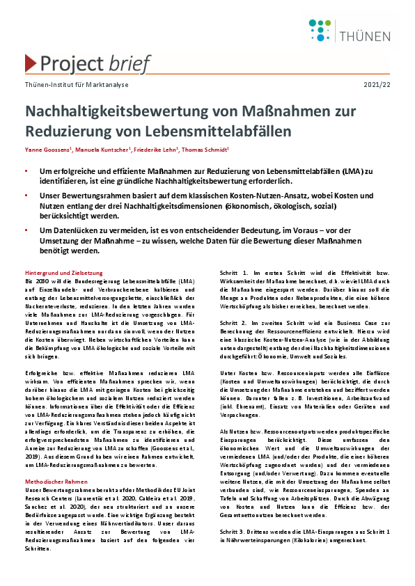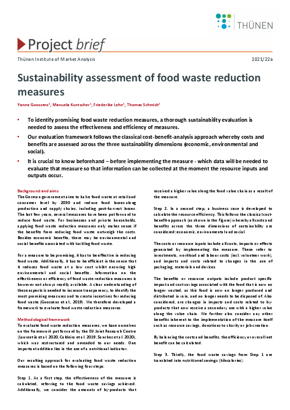 Nachhaltigkeitsbewertung von Maßnahmen zur Reduzierung von Lebensmittelabfällen