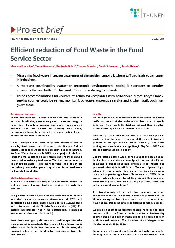 Efficient reduction of Food Waste in the Food Service Sector