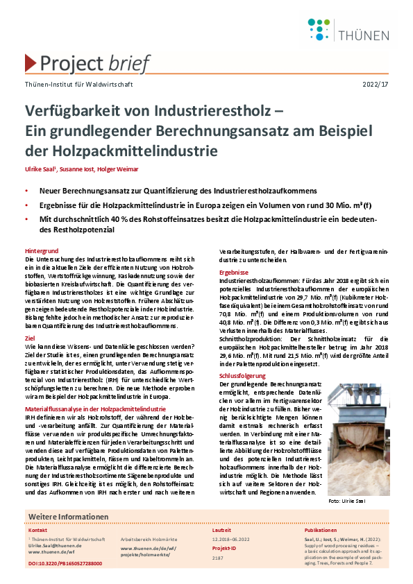 Verfügbarkeit von Industrierestholz – Ein grundlegender Berechnungsansatz am Beispiel der Holzpackmittelindustrie