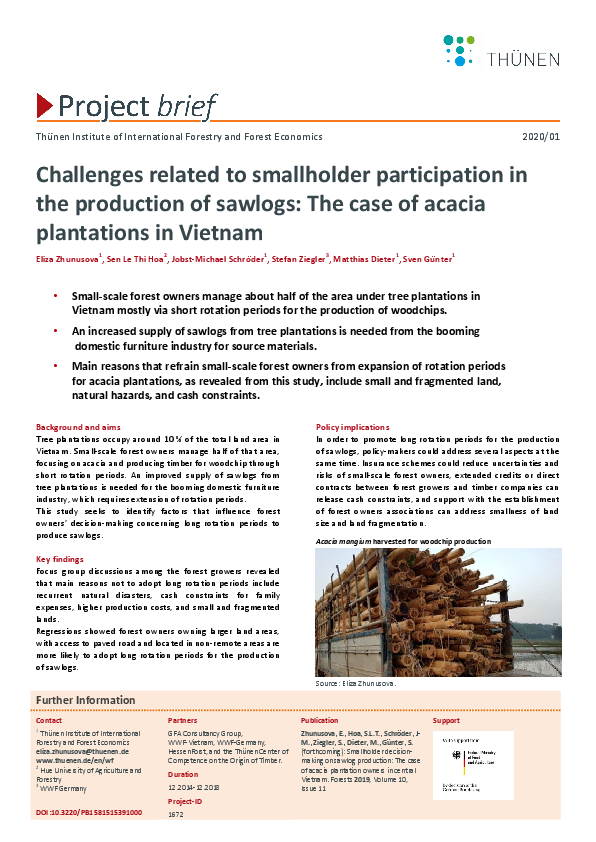Challenges related to smallholder participation in the production of sawlogs: The case of acacia plantations in Vietnam