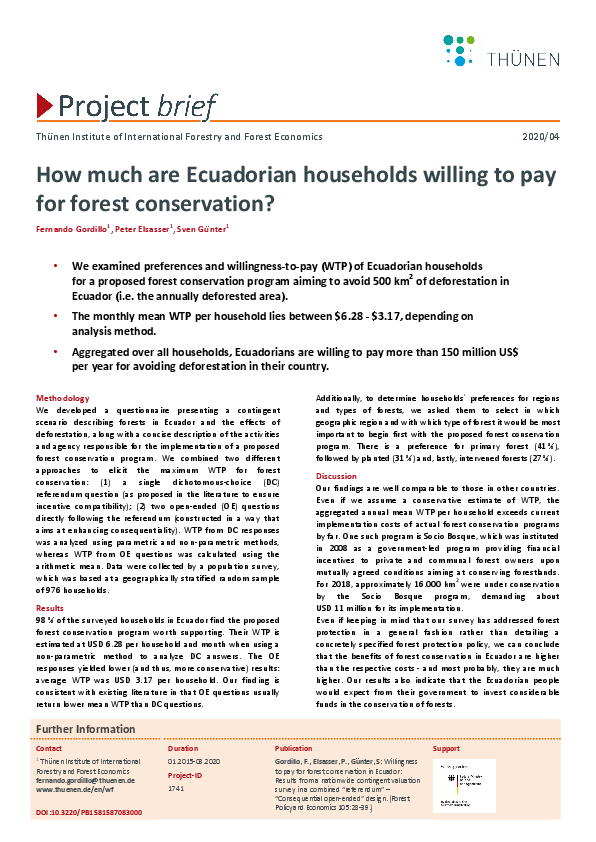 Deforestation and forest conservation: effects on farm income in Ecuador