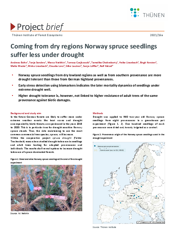 Junge Fichten aus trockenen Regionen leiden weniger unter Trockenstress