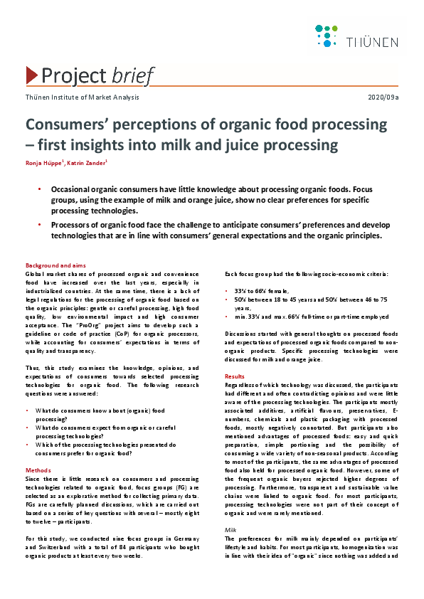 Consumers’ perceptions of organic food processing – first insights into milk and juice processing