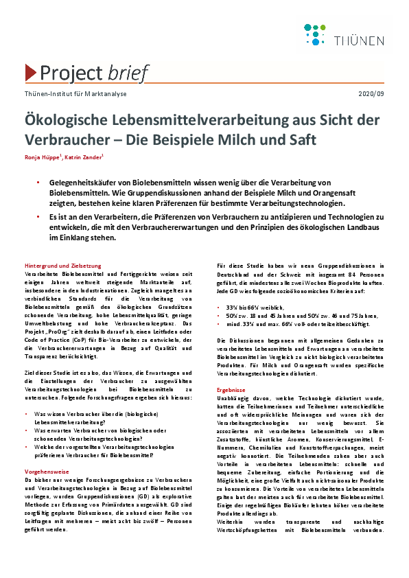 Ökologische Lebensmittelverarbeitung aus Sicht der Verbraucher – Die Beispiele Milch und Saft