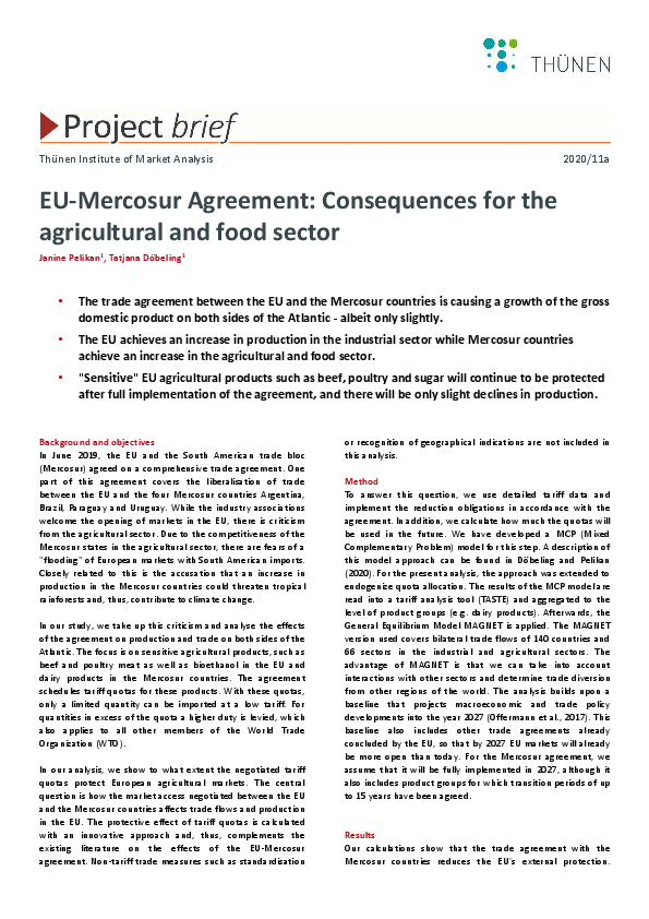 EU-Mercosur Agreement: Consequences for the agricultural and food sector