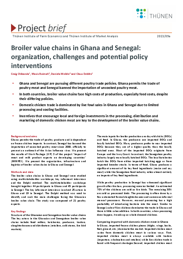 Broiler value chains in Ghana and Senegal: organization, challenges and potential policy interventions