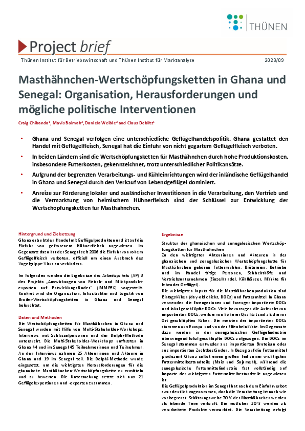 Masthähnchen-Wertschöpfungsketten in Ghana und Senegal: Organisation, Herausforderungen und mögliche politische Interventionen