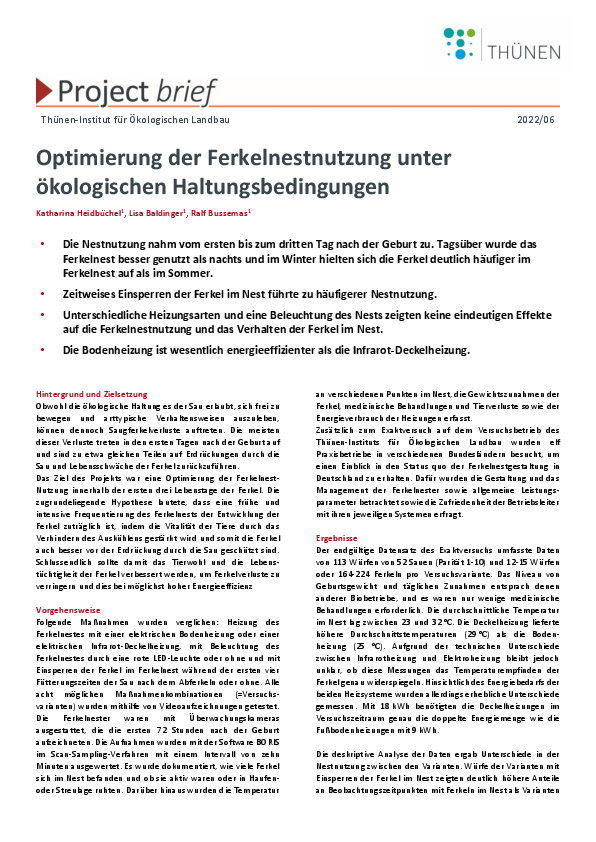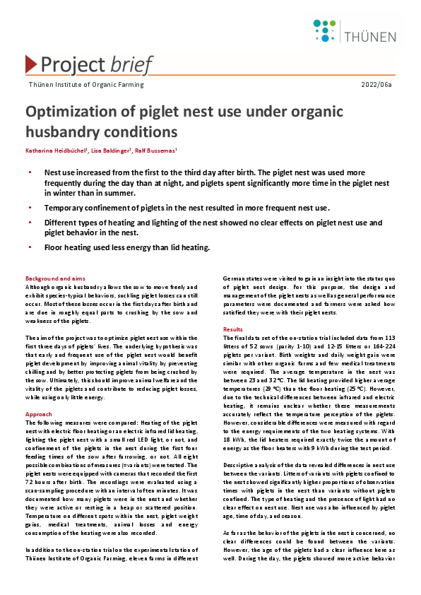 Optimierung der Ferkelnestnutzung unter ökologischen Haltungsbedingungen