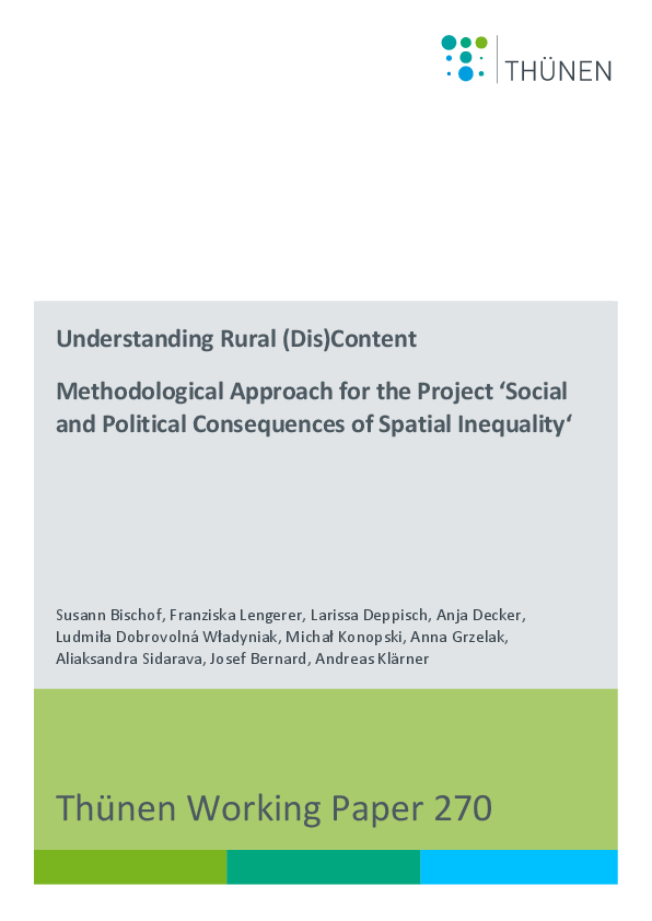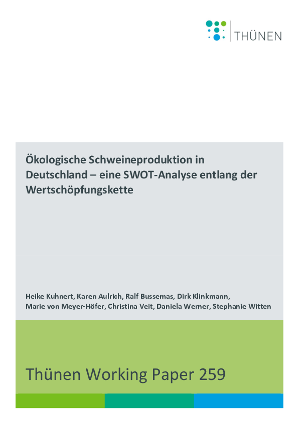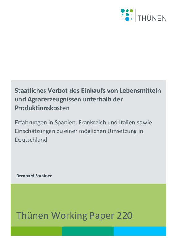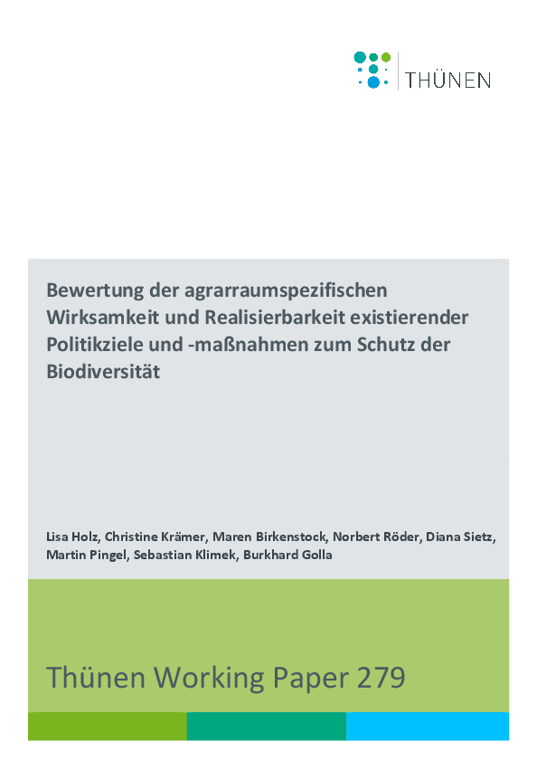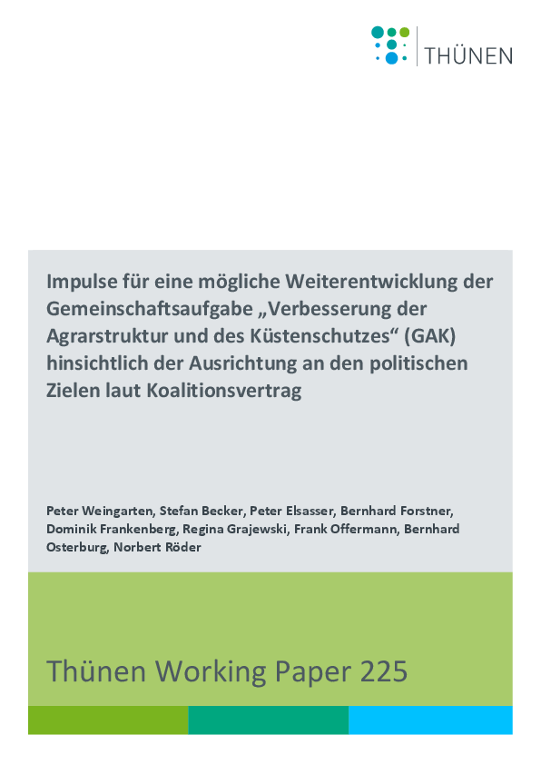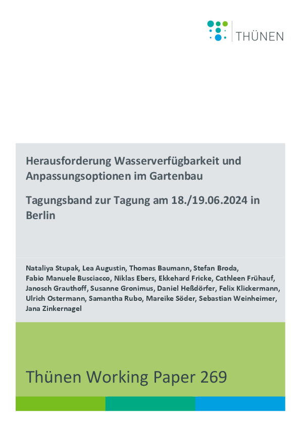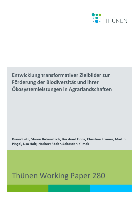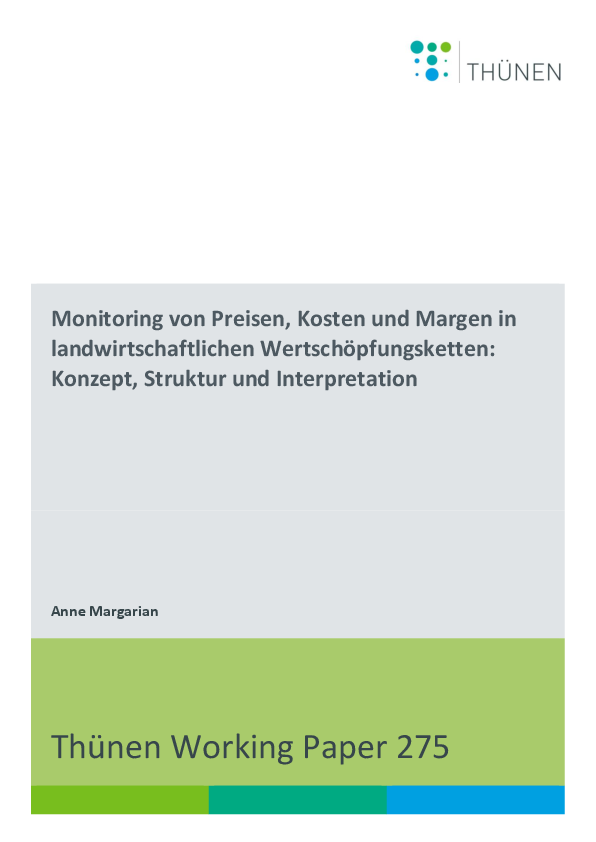 Das Thünen Working Paper erscheint unregelmäßig nach Bedarf. Veröffentlicht werden ausgewählte Berichte aus der aktuellen Forschungsarbeit der Thünen-Fachinstitute. Die Sprache der Beiträge ist deutsch oder englisch. Die Working Papers werden nur online veröffentlicht.