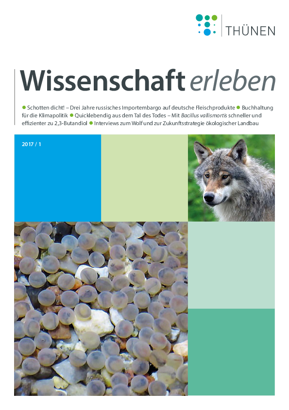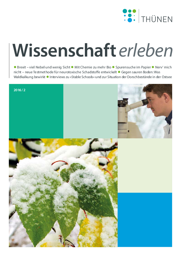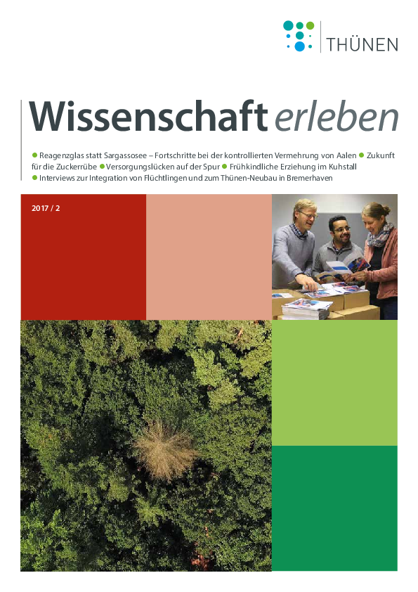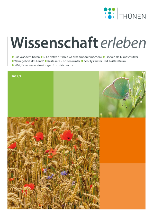 Das Magazin „Wissenschaft erleben“ informiert auf lebendige Weise und in kurz gefasster Form über Forschungsergebnisse und Neuigkeiten aus dem Thünen-Institut. Außerdem werden fachliche Einschätzungen zu relevanten Fragestellungen rund um die Arbeitsgebiete des Thünen-Institutes frühzeitig auf den Punkt gebracht und zur Diskussion gestellt.