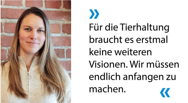 Auf die Frage ob sie eine Vision habe, meint Vogt: „Seit der Borchert Kommission haben wir einen guten Fahrplan inklusive Finanzierungsvorschlägen und Machbarkeitsstudie. Für die Tierhaltung braucht es erstmal keine weiteren Visionen. Wir müssen endlich anfangen zu machen.“