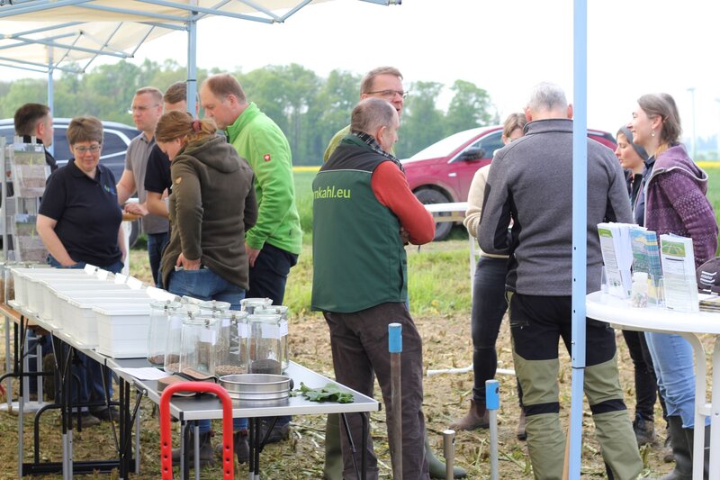 During the field day, the flowering canola trial was visited, sampling strategies and methods were discussed, and the topic of possible contamination with heavy metals, antibiotic residues, and (micro)plastics was addressed. The input of possible contaminants is an important topic and was discussed comparatively to inputs from mineral fertilization.