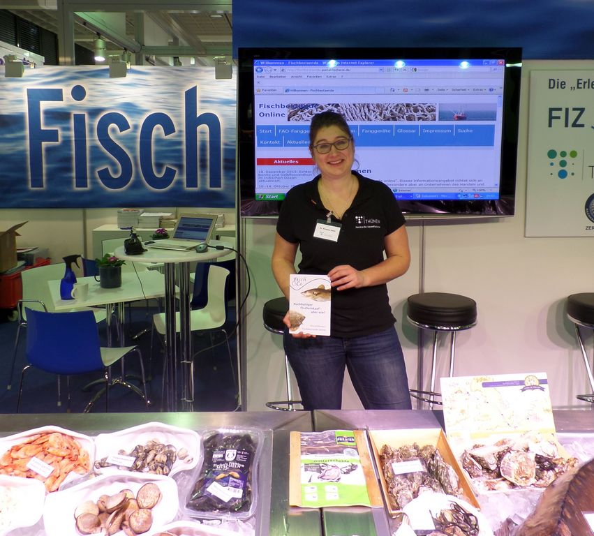 The stand of the Fish Information Centre (Fisch-Informationzentrum, FIZ) is the major attraction of the seafood market in Hall 14.1 at the International Green Week in Berlin. Here we presented this year the website "Fischbestände online" (in German). Among many interested visitors were also the Federal Minister of Food and Agriculture, Christian Schmidt and the Parliamentary State Secretary Dr. Maria Flachsbarth.