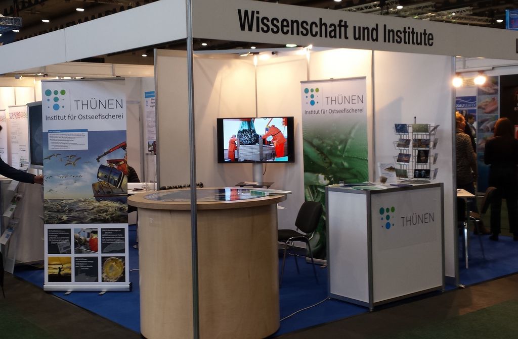"fish international" is the only trade fair for fish and seafood in Germany. It serves as a platform for traders and caterers where they can gain information and ideas. This year a stand was organized on which various research institutes presented their work. In cooperation with our colleagues from the Institute of Sea Fisheries, we informed about our activities at the Thünen Institute and presented especially our fishing technology department and the webpage "Fischbestände Online” (“fish stocks online”, in German). "Fish stocks online" gives information on the state of fish stocks, which are relevant for the German retail market.