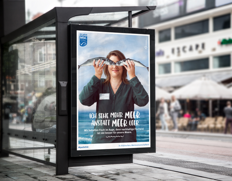 The keynote speeches were given by the Managing Director of the MSC, Rupert Howes, and the Schleswig-Holstein Minister of the Environment Robert Habeck. In the subsequent panel discussion, representatives of fisheries, trade, environmental organizations and science discussed what has happened in these 20 years, if ecolabelling works (yes!), and what challenges await the MSC in the coming years. The anniversary is accompanied by a publicity campaign - one of the posters shows the Thünen fish researcher Dr Kristina Barz (see picture).