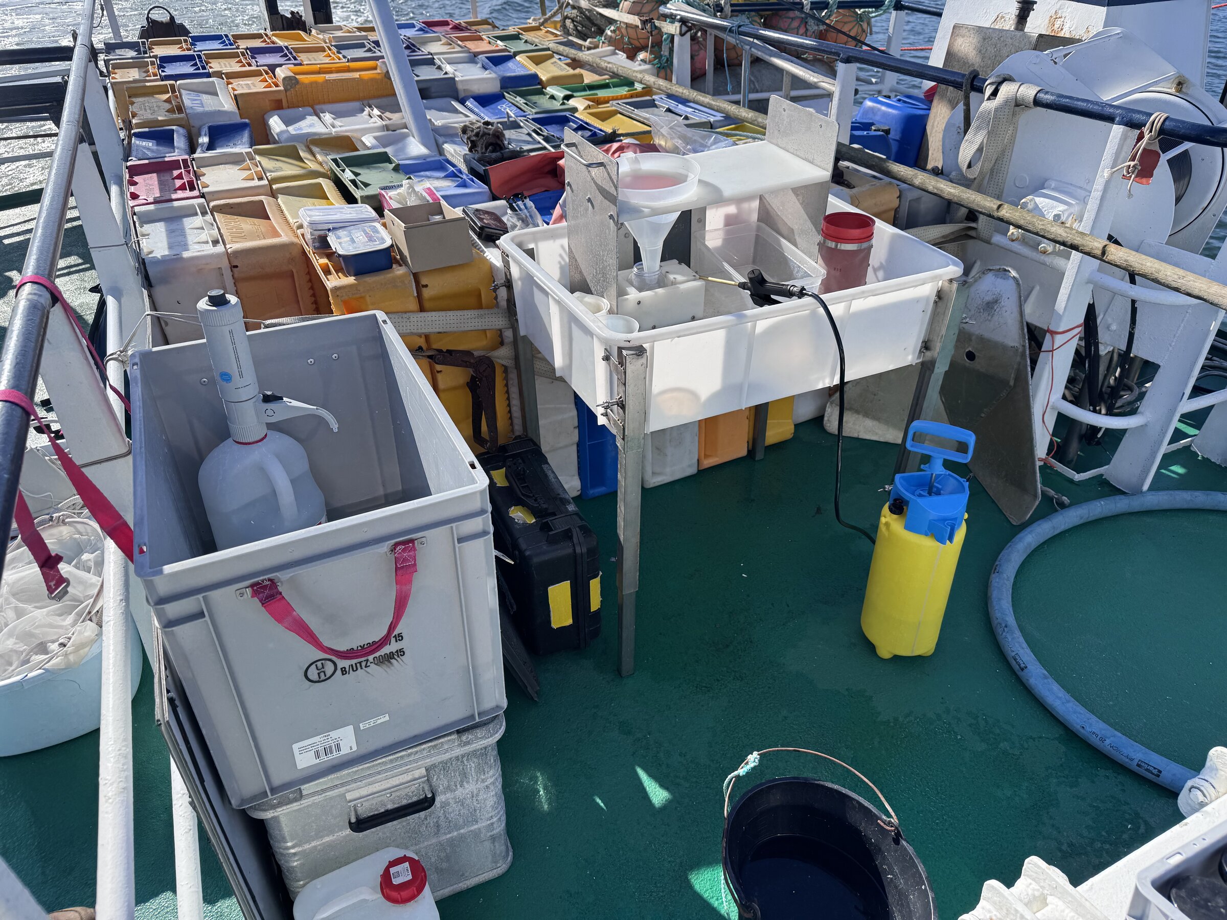 To ensure they did not miss the start of spawning, the Thünen Institute chartered the commercial cutter “Crampas”, based in Sassnitz, for the first few weeks. The 18-metre-long “Crampas” was one of the key herring vessels off Sassnitz before the herring trawl fishery was closed in 2022. Its draught is still shallow enough to access all the survey stations. At the same time, the vessel offers enough space for two researchers and facilities for deploying scientific equipment to collect the most important data.