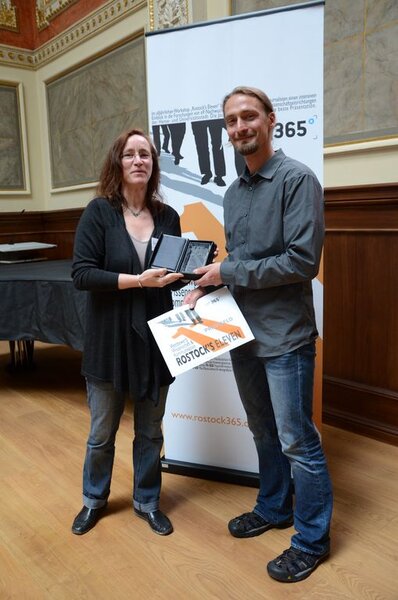 He is thus the 4th winner of this competition from our institute, following Petr Zajicek (2013), Simon Weltersbach (2012) and Robert Bauer (2011). The contest was conducted for the 6th time by the registered society [Rostock denkt 365°]. 12 young scientists from scientific institutes of the region presented their work to a group of 11 science journalists. The workshop took place between June 11th and 13th.