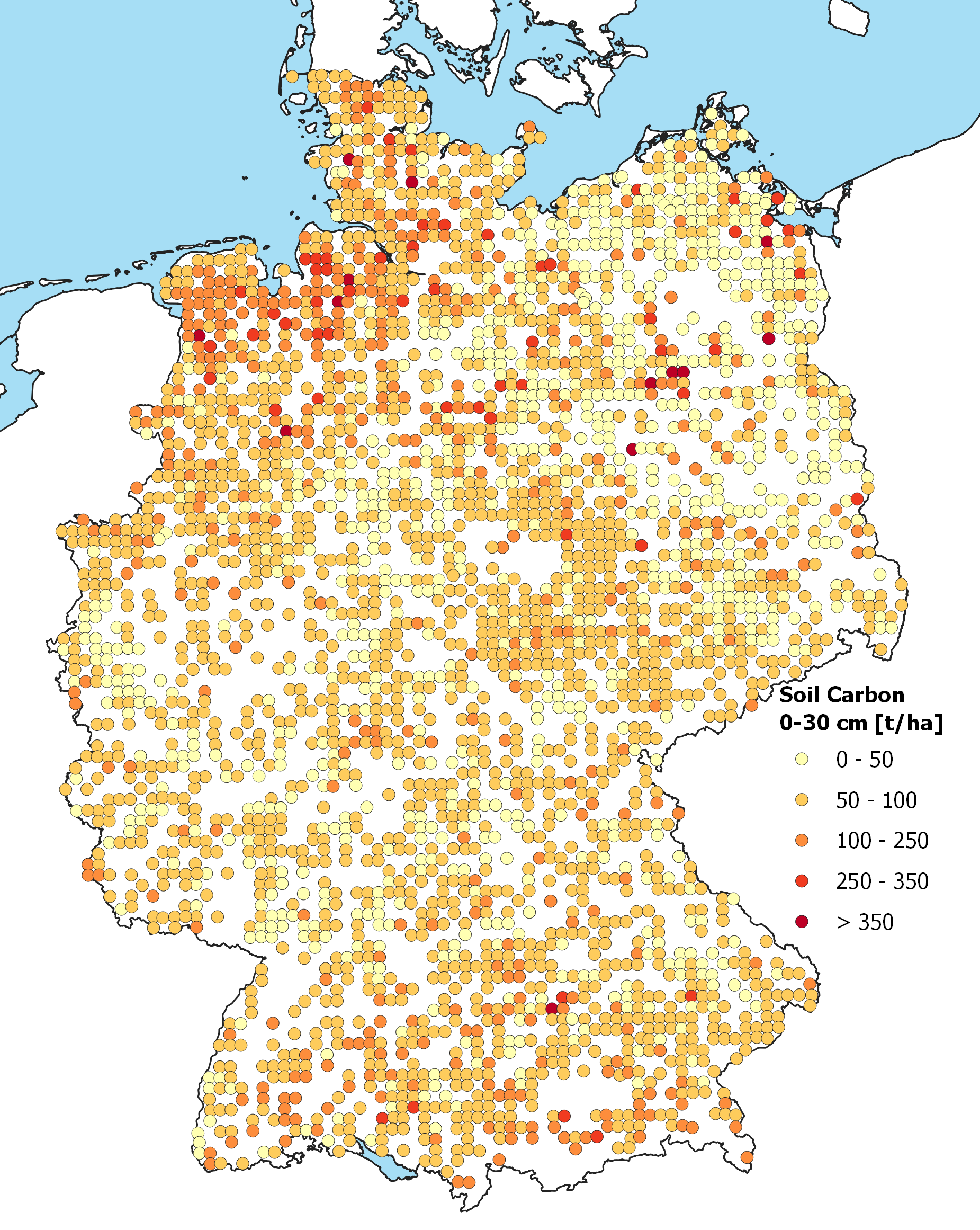 Poeplau C, Jacobs A, Don A, Vos C, Schneider F, Wittnebel M, Tiemeyer B, Heidkamp A, Prietz R, Flessa H (2020) Stocks of organic carbon in German agricultural soils - Key results of the first comprehensive inventory. J Plant Nutr Soil Sci 183(6):665-681, DOI:10.1002/jpln.202000113
