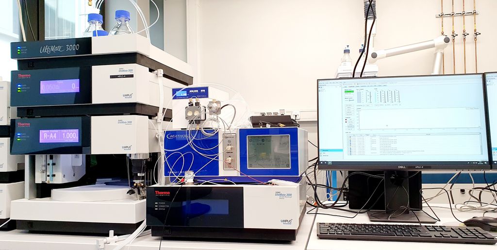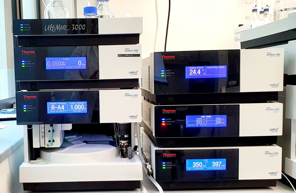 - Liquid chromatograph with fluorescence- and UV detector (HPLC-F)