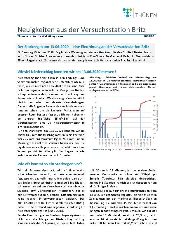 The heavy rainfall on 13.06.2020 - a classification at the Britz test station
