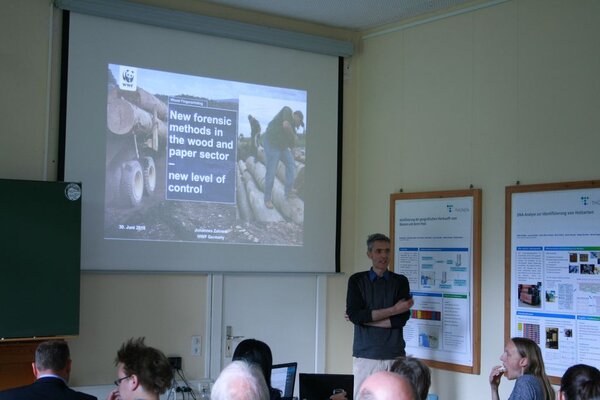 Der FSC (Forest Stewardship Council) Deutschland hatte am 29.06.2016 seine Vollversammlung bei der Otto group in Hamburg. In diesem Rahmen wurden am 30.06.2016 Exkursionen angeboten. Eines dieser Exkursionsziele war das Thünen-Institut für Forstgenetik in Großhansdorf. Hier wurde den Mitgliedern des FSC ein Einblick in die Arbeit des Thünen-Holzkompetenzzentrums vermittelt. Nach einer kurzen Begrüßung durch Dr. Uwe Sayer vom FSC Deutschland gab der Direktor des Thünen-Instituts für Forstgenetik, Dr. Bernd Degen, eine kurze Einführung in die Thematik der genetischen Holzart- und Holzherkunftsidentifizierung.