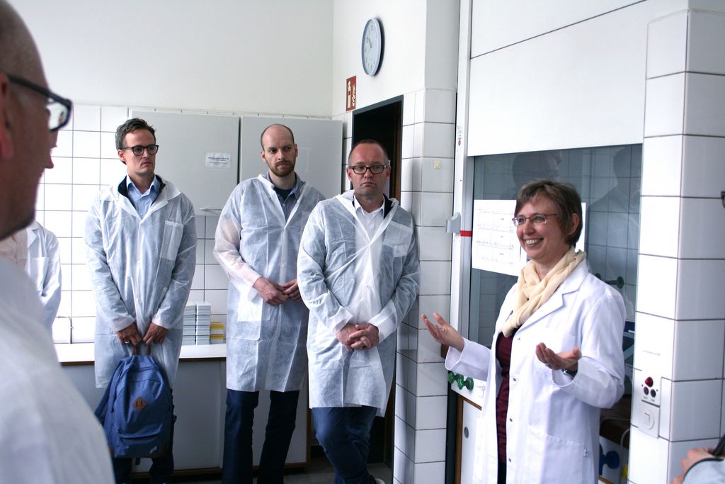 Anschließend wurden die Besucher durch die Laborräume geführt und konnten sich direkt vor Ort die Arbeit der Mitarbeiter anschauen. Der Rundgang begann in einem Labor, in dem Susanne Bein vorführte wie die eingesammelten Referenzproben durchgesehen, auf Richtigkeit der Daten überprüft und mit einer ID-Nummer versehen werden.