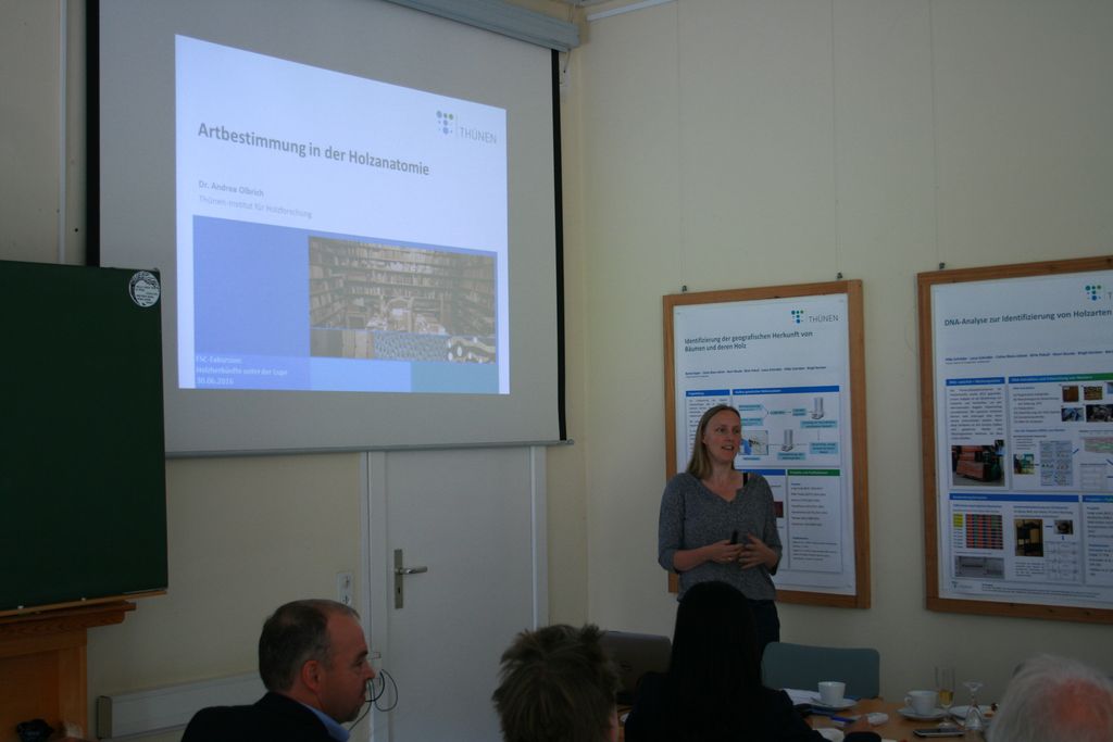 Dr. Andrea Olbrich ergänzte die Darstellung des Thünen-Holzkompetenzzentrums durch Vorstellung der anatomischen Holzprüfungen des Instituts für Holzforschung.