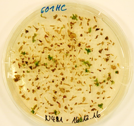 These lines were transferred to the greenhouse for phenotypic analysis. Furthermore, RNA isolations from the selected lines were carried out in order to verify a modification at the cDNA level as well. For this purpose, RNA was isolated from leaf and root material, transcribed into cDNA and amplified by means of PCR. It was found for Potri.005G128400 that the same modifications are present in cDNA from roots, only one line had an additional modification with a deletion of 5 nt instead of the insertion of a single nucleotide. The cDNA analysis from leaf material showed superimposed chromatograms in 3 out of 7 lines, although only one of the two alleles was amplified. This indicates chimeric structures. PCR amplification is currently being used to check whether the cDNA samples produced are based exclusively on RNA or whether they are contaminated with DNA. Two lines modified independently in Potri.005G128400 have already been handed over to project partner P3 (Dr. Stephanie Werner, Institute of Plant Biochemistry, Halle) for mycorrhization experiments.
