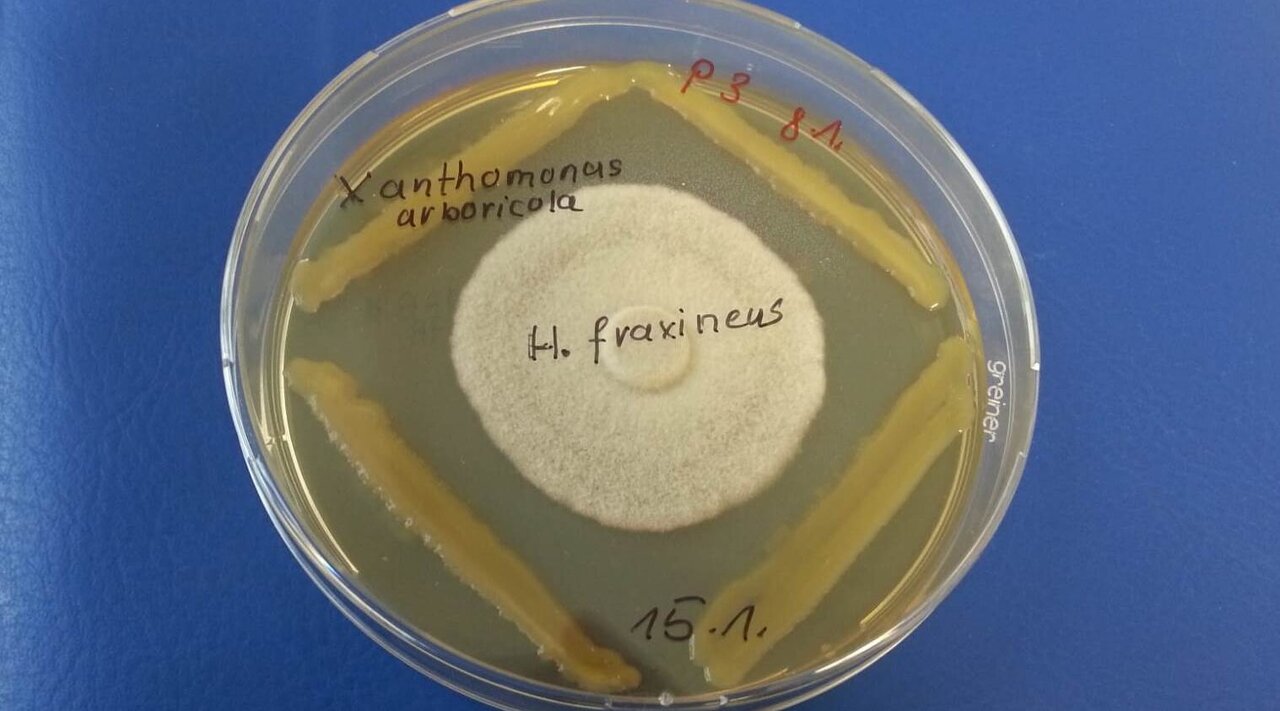 The project aims to develop a biological control system on the basis of epi-and endophytic isolates, which are able to persist in ash plants. Promising bacteria and fungi are selected based on the comparison of the microbiomes of infected and resistant plants applying next generation sequencing. The selected microbial isolates will be genetically characterized and evaluated with regard to their antagonistic potential. Finally, antagonistic isolates and/or microbial consortia will be evaluated in planta. This promising approach offers the chance of applying antagonistic microorganisms for the control of ash dieback in seed orchards and forests.