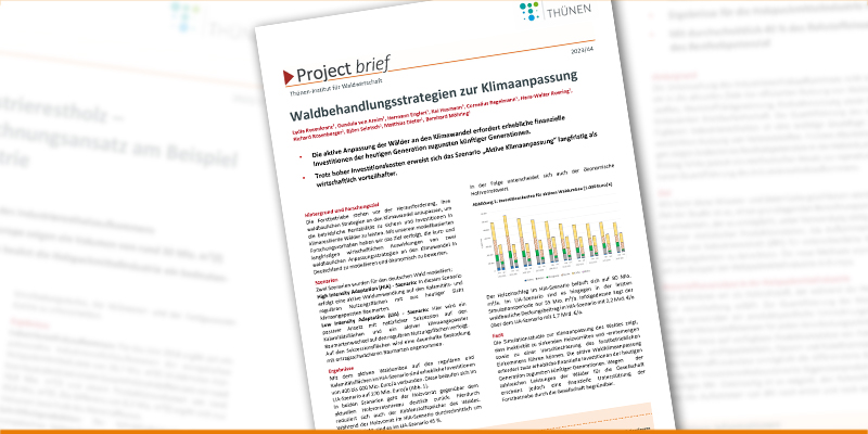 Rosenkranz L, Arnim G von, Englert H, Husmann K, Regelmann C, Roering H-W, Rosenberger R, Seintsch B, Dieter M, Möhring B (2023) Alternative forest management strategies to adapt to climate change: an economic evaluation for Germany. Braunschweig: Johann Heinrich von Thünen-Institut, 38 p, Thünen Working Paper 219, DOI:10.3220/WP1691499012000