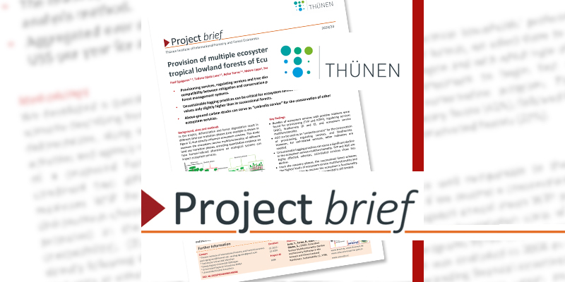 - Eguiguren P, Ojeda Luna T, Torres B, Lippe M, Günter S (2020) Ecosystem service multifunctionality: Decline and recovery pathways in the Amazon and Chocó Lowland rainforests. Sustainability 12(18):7786, DOI:10.3390/su12187786 PDF Dokument (nicht barrierefrei) 1338 KB