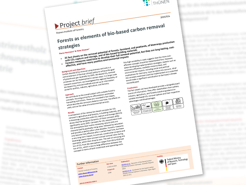 Wollnik R, Borchers M, Seibert R, Abel S, Herrmann P, Elsasser P, Hildebrandt J, Meisel K, Hofmann P, Radtke K, Selig M, Kazmin S, Szarka N, Thrän D (2024) Dynamics of bio-based carbon dioxide removal in Germany. Sci Rep 14:20395, DOI:10.1038/s41598-024-71017-x