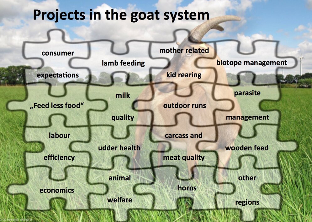 Professional goat keeping is not developed well in Germany. Particularly in organic goat keeping are difficulties to fullfil standards, goals and expectations of consumers. Main problems are grazing systems and parasite prevention, high animal welfare without manipulation, indication of "good" milk, feeding and health and last but not least profitability.