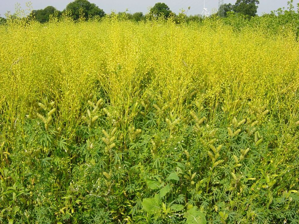 By mixed cropping these oil crops with other grain crops, weed suppression could be consistently increased. Lower weed covering was determined in plots with mixtures of peas with white mustard or false flax compared to sole cropped peas; mixtures of blue lupins with safflower or false flax compared to sole cropped lupins; mixtures of linseed with spring wheat or false flax compared to sole cropped linseed, and mixtures of winter rape with winter barley or winter rye compared to winter rape in sole cropping.