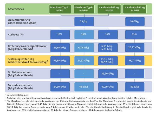 Our description of the current North Sea shrimp value chain, based on interviews with various stakeholders, confirms that it is very unbalanced and internationally organised. Most of the brown shrimps caught in Germany are bought by just two Dutch wholesalers and then sold on to retailers after the manual de-shelling in Morocco organised by them. These wholesalers achieve the highest profit margins compared to the fishing industry and retailers.