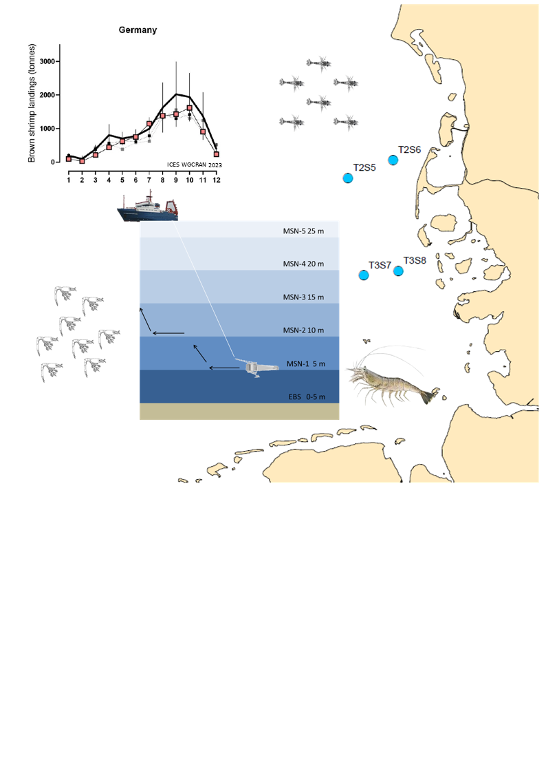 - How are the early, planktonic life stages of the North Sea shrimp vertically distributed in the German Bight?