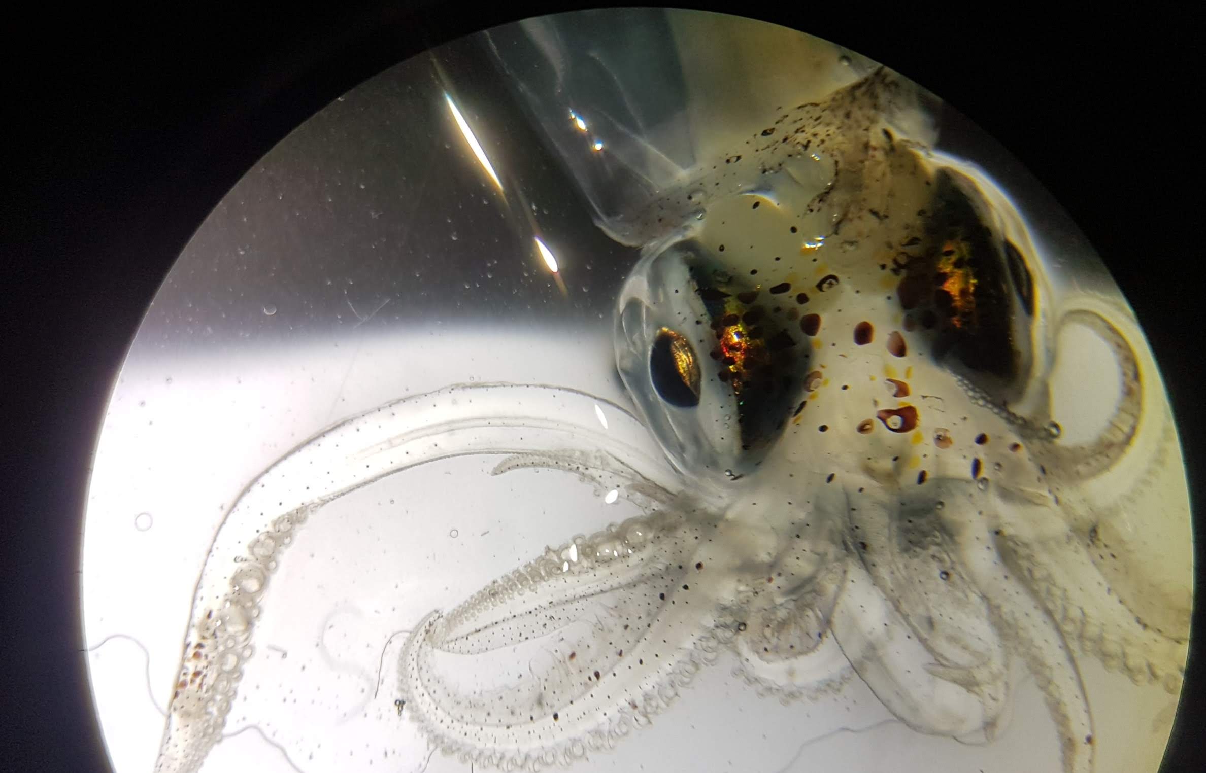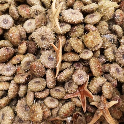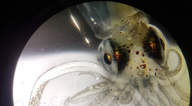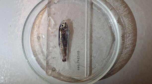 The smallest fishing gear on board also catches other exciting creatures. The ring-shaped opening of this MIKey-M net has a diameter of only 20 cm and sits on top of the frame of the large plankton fishing gear - the so-called MIK. The special feature of the net is its small mesh size. This means that even tiny organisms in the plankton, such as fish eggs, small fish larvae and crustaceans, but also interesting larvae of other sea creatures, e.g. starfish, can be caught in the net.