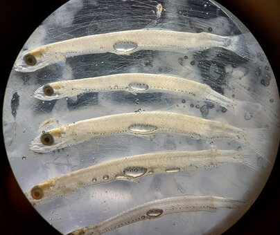 Work on board takes place around the clock. During the winter IBTS (= IBTS Q1), in addition to the daytime work, an additional night programme focuses on fish larvae, especially herring larvae. The distribution and abundance (=density) of large herring larvae (>18 mm, so-called 0-year-olds) is estimated from plankton catches with a 2 m ring net (MIK). The quantity of herring larvae caught makes it possible to calculate or estimate the expected recruitment to the North Sea herring stock - also known as annual recruitment - in the coming years.