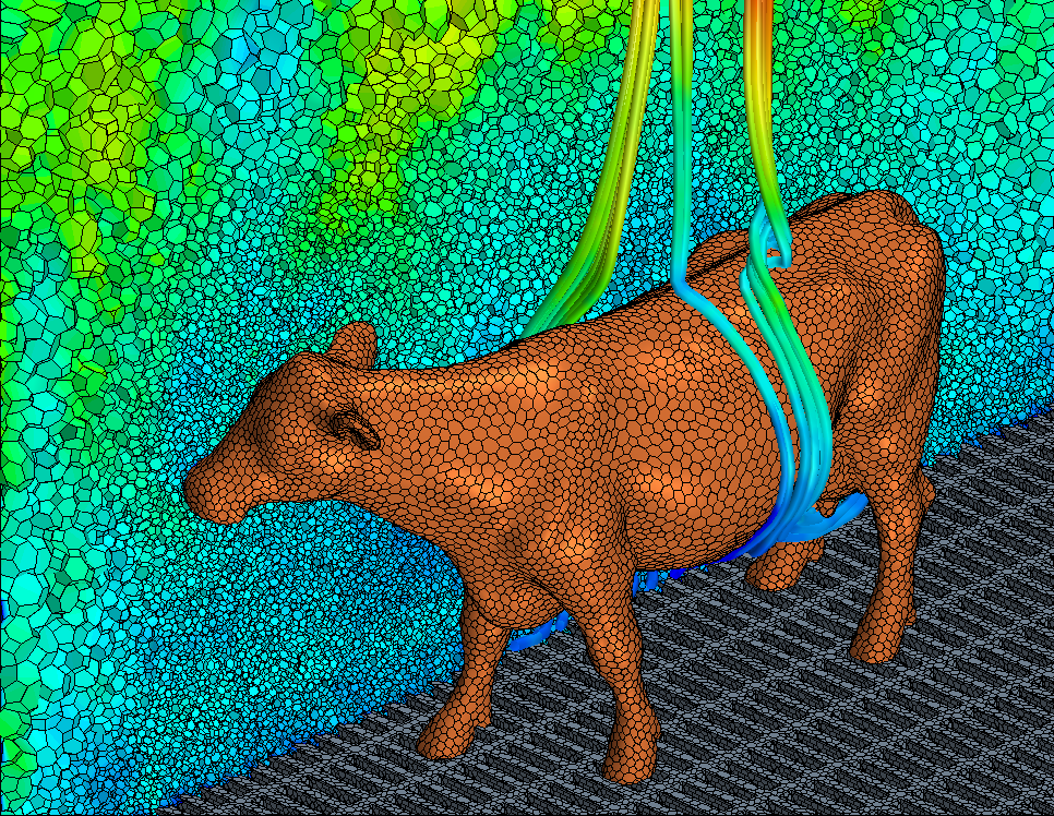 The distribution of gaseous air pollutants such as ammonia can be calculated by simulation programs for example in the special case of livestock husbandry inside a stable as well as the emissions to the environment coming from the stable. A great advantage thereby is the possibility to determine the concentration not only at one point (such as a measurement) but also give it for every position in the virtual calculation room. This can be of great interest especially when measurements are not possible because of technical reasons. On the other hand this model-based measuring technique allows also verifying new model-approaches and developments of low-emission stable systems. Beside the dispersion of gaseous substances massless and mass afflicted particles can be also calculated. This serves amongst others to provide dispersion scenarios and to determine an environmental load.