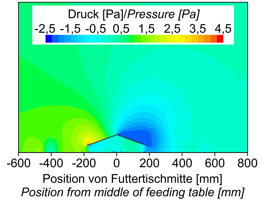 With computational fluid dynamics information about physical values such as pressure, turbulence intensity and velocity can be specified and visualized in a virtual calculation room.