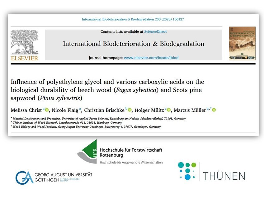 The goal of this study was to investigate the impact of wood modification with polyethylene glycol (PEG) 400 and various carboxylic acids (citric acid (CA), malic acid (MA) and 1,2,3,4-butanetetracarboxylic acid (BTCA)) on the biological durability of beech wood (Fagus sylvatica) and Scots pine sapwood (Pinus sylvestris). For the brown, white and soft rot experiments, mass losses (ML) were calculated according to the respective standards. Weight percent gain, bulking and anti-swelling efficiency were determined to determine the quality of the modifications. Modifying agents, fixed inside the wood, demonstrated anti-swelling efficiency after leaching cycles (beech wood: 9–46 %). The decay resistance against brown and white rot fungi was considerably improved, with PEG/CA and PEG/BTCA being more effective than PEG/MA. Beech wood modified with PEG/CA achieved durability class (DC) 1–2, PEG/BTCA reached DC 1 and PEG/MA fell into DC 2–4. For Scots pine sapwood, PEG/CA and PEG/BTCA reached DC 1, while PEG/MA only achieved DC 4.