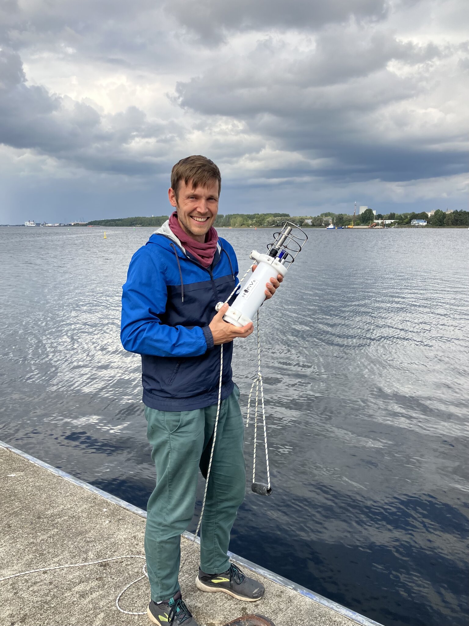 Mathis Mahler has been part of the Fisheries and Survey Technology Working Group at the Thünen Institute of Baltic Sea Fisheries in Rostock since 2021. As someone with a passion for technology, he initially studied mechatronics. "I did my master's degree in biomedical engineering because I wanted to use technology to improve people's lives," he explains. At the Thünen Institute, he is now developing a technical system that may one day improve the health of the Baltic Sea. In the PrimePrevention project, he is currently developing and testing the HyFiVe system in collaboration with researchers from the Leibniz Institute for Baltic Sea Research in Warnemünde. The aim is to detect biological hazards such as blue-green algae at an early stage and to establish a warning system. The scientists are working with the fishing industry to achieve this. Commercial fishing vessels are being equipped with HyFiVe systems. The crew uses the probe to take regular measurements: salinity, temperature, depth, oxygen content and indicators for cyanobacteria. The measurement data is then transmitted to a server on land via a router and can be examined for threshold values, for example. With HyFiVe, fishermen can detect underwater conditions, such as oxygen content, in real time.