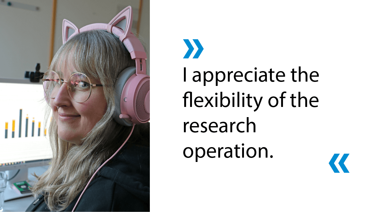 It is important to her that she can continue to develop despite always working for the same employer. She studied media science and communication design while working. She managed the second relaunch of the website as project manager. However, a lot of what she knows she taught to herself and through professional exchanges in forums. “I appreciate the creative freedom and flexibility of the research business,” she says.