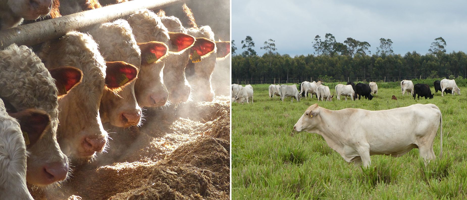 The sum of emissions from digestion, farm manure management and feed production, converted into CO2 equivalents (CO2eq), is about 27 kg CO2eq per kg beef in a typical beef finishing operation in Brazil, and only about 8 kg CO2eq in a typical conventional finishing operation in Germany. One of the main reasons for this big difference is that the slow-growing cattle in Brazil produce much higher methane emissions per kilogram of beef. In the classic pasture fattening system, only the grass growth and additional minerals are available to the animals. The seasonal variation in pasture growth and the prevailing pasture management limit the finishing performance.