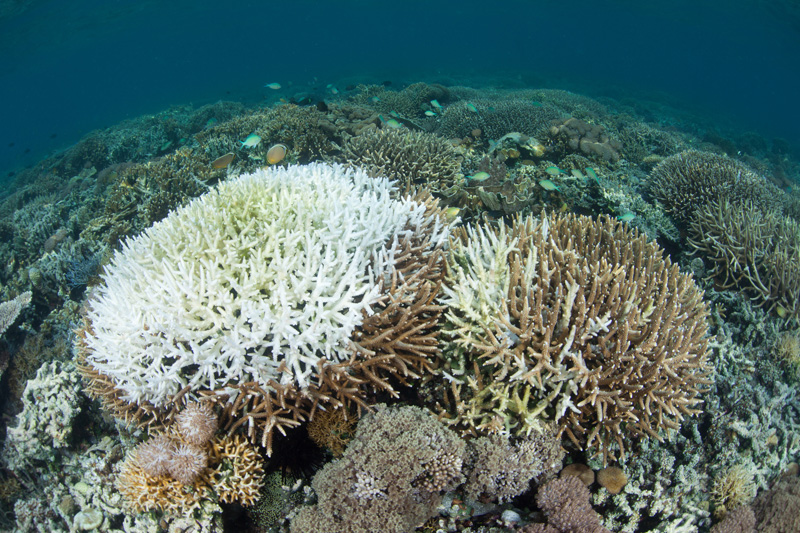 Climate change affects the physical and chemical properties of the oceans. In addition to warming, the increased uptake of CO2 leads to ocean acidification. This has direct consequences for fish, shellfish and other marine organisms. Ocean acidification affects coral growth and represents a threat to the survival of endangered reefs. Coral bleaching events are likely to increase. Additionally, calcareous shells of mollusks, such as mussels and oysters, become thinner. Since the beginning of industrialization, the average pH of the oceans has already fallen 0.1. This change means that seawater has become acidic by about 30%. By 2100, a further decrease of 0.3 to 0.4 is expected; the pH of seawater was not so low for at least 50 million years. When water is warmed, it can absorb less oxygen, having as possible consequences: The maximum length that large fishes can reach decreases; the number of coastal regions with low-oxygen waters increases; regions in the ocean where oxygen content is depleted for natural reasons spread.
