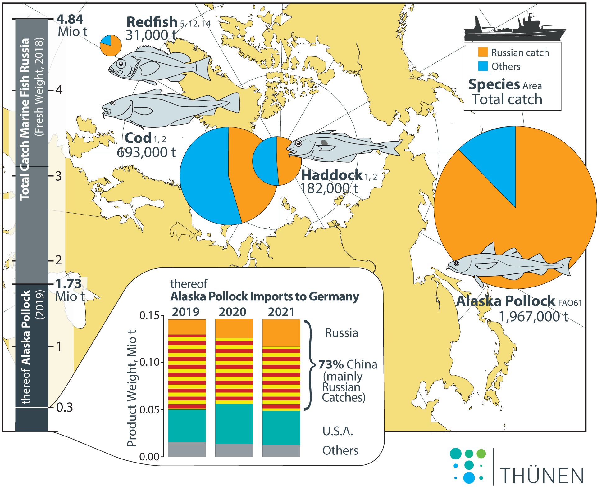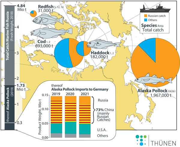 Russia is the fourth largest producer of marine fish in the world. According to the Food and Agriculture Organization (FAO), landings of Russian fishing vessels amounted to 4.84 million tons of marine fishery products in 2018. Russia is also of outstanding importance for imports to the EU and Germany, especially for one of the most popular marine fish on German plates, Alaska pollock, which is found in most fish fingers.