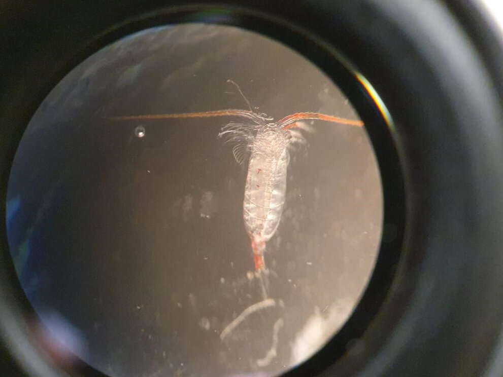 In the working area, we used a multi-closing net midi with a mesh size of 200µm (MSN 200) to take samples at multiple depths of the water column. This allows us to also get an idea of the vertical distribution of organisms in the water column. With our net we primarily catch copepods, small krill species, salps and other small organisms (size usually less than 2-3 cm) but some small fish as well as a vampire squid have also been part of our catches this time. Once on board, we brought our samples into our lab where for each station and depth, we separated the dominating species by species, sex, and developmental stages and froze samples in -80 °C. The rest of the samples were stored in formaldehyde. Hanna also lead experiments with the dominant copepods in order to determine their production rates of fecal pellets. Her thesis deals with the role of copepods in the biological carbon pumps. Future chemical analyses of the fecal pellets, which she will perform in Bremen, might also elucidate the proportion of new and recycled production at the sampled stations. Tine also froze krill species which were caught in our net as well as the maxi net of the fisheries biologists in order to study the community composition and trophic importance of krill in the Benguela upwelling system.
