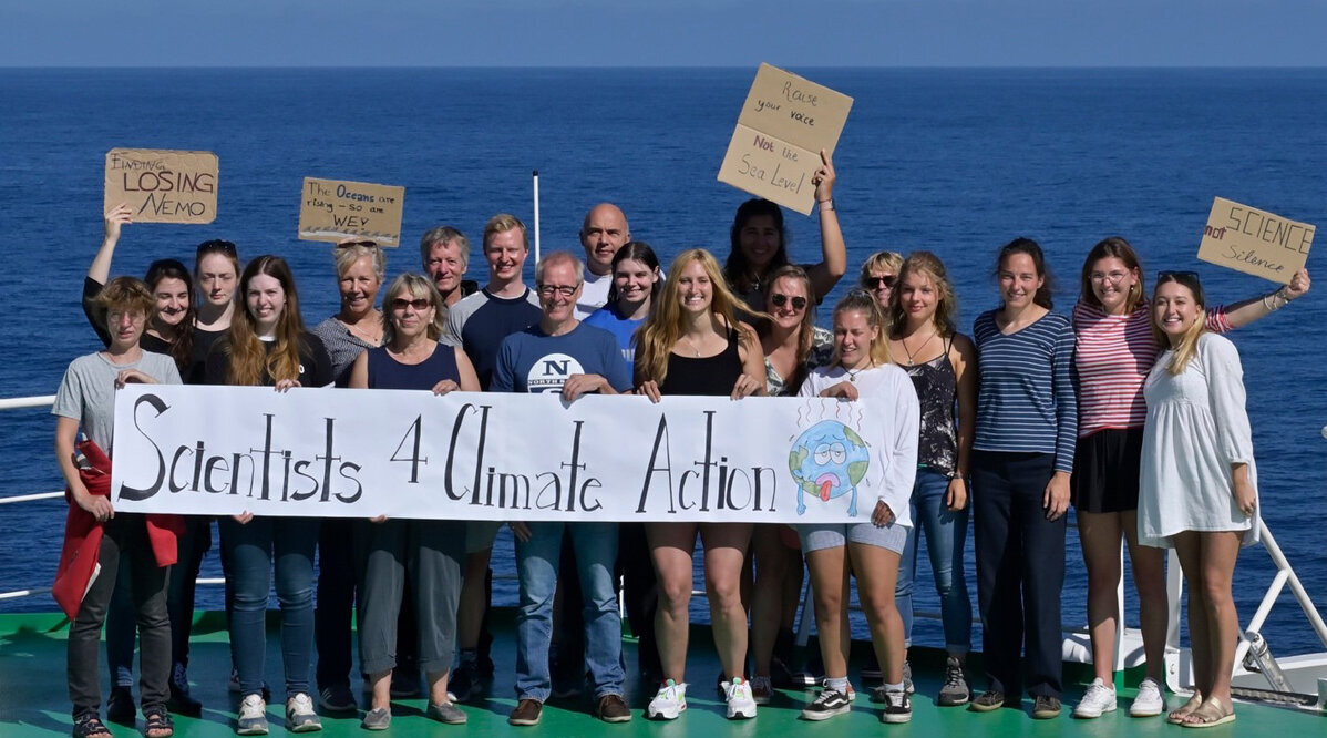While scientists on board the research vessel SONNE could not be physically present at the strikes, they decided to still let their voices be heard. They gathered to support the strike and for a protest to raise awareness of the immense problems we are facing.